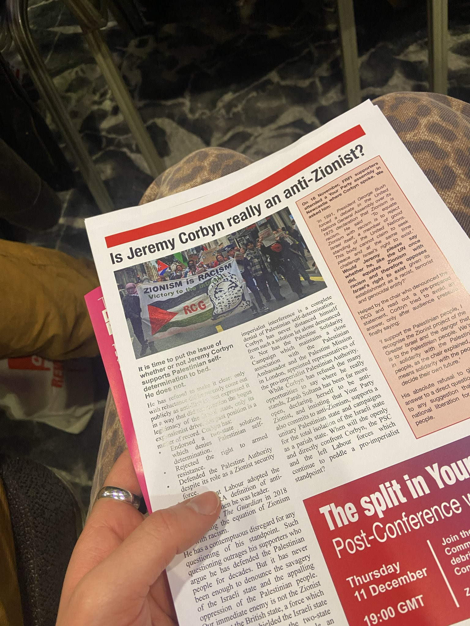 The chaos begins: Despite this optimism, just days before the conference MPs Adnan Hussain and Iqbal Mohamed quit the party over “persistent infighting.” On Friday evening — the night before the conference — there were two different rallies: one organised by Sultana and another by Corbyn. Leaflets were placed on seats at Sultana’s event at the Holiday Inn on Lime Street, accusing Corbyn of not being an” anti-Zionist”.
