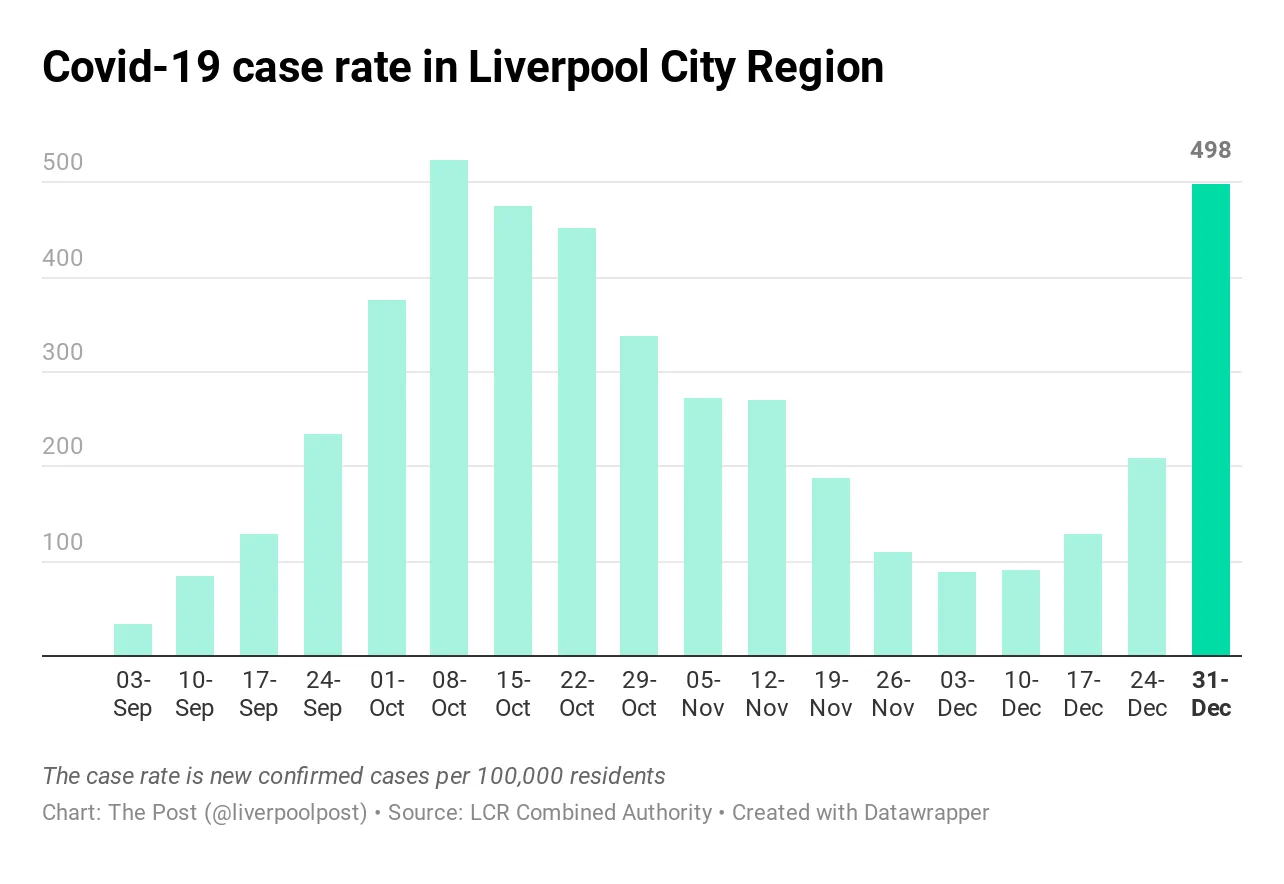 Good afternoon Post readers — this is a brief update on the local Covid-19 numbers, because for the first time in a couple of months, they are rising fast again. The numbers cover the whole Liverpool City Region and go up to the end of December.