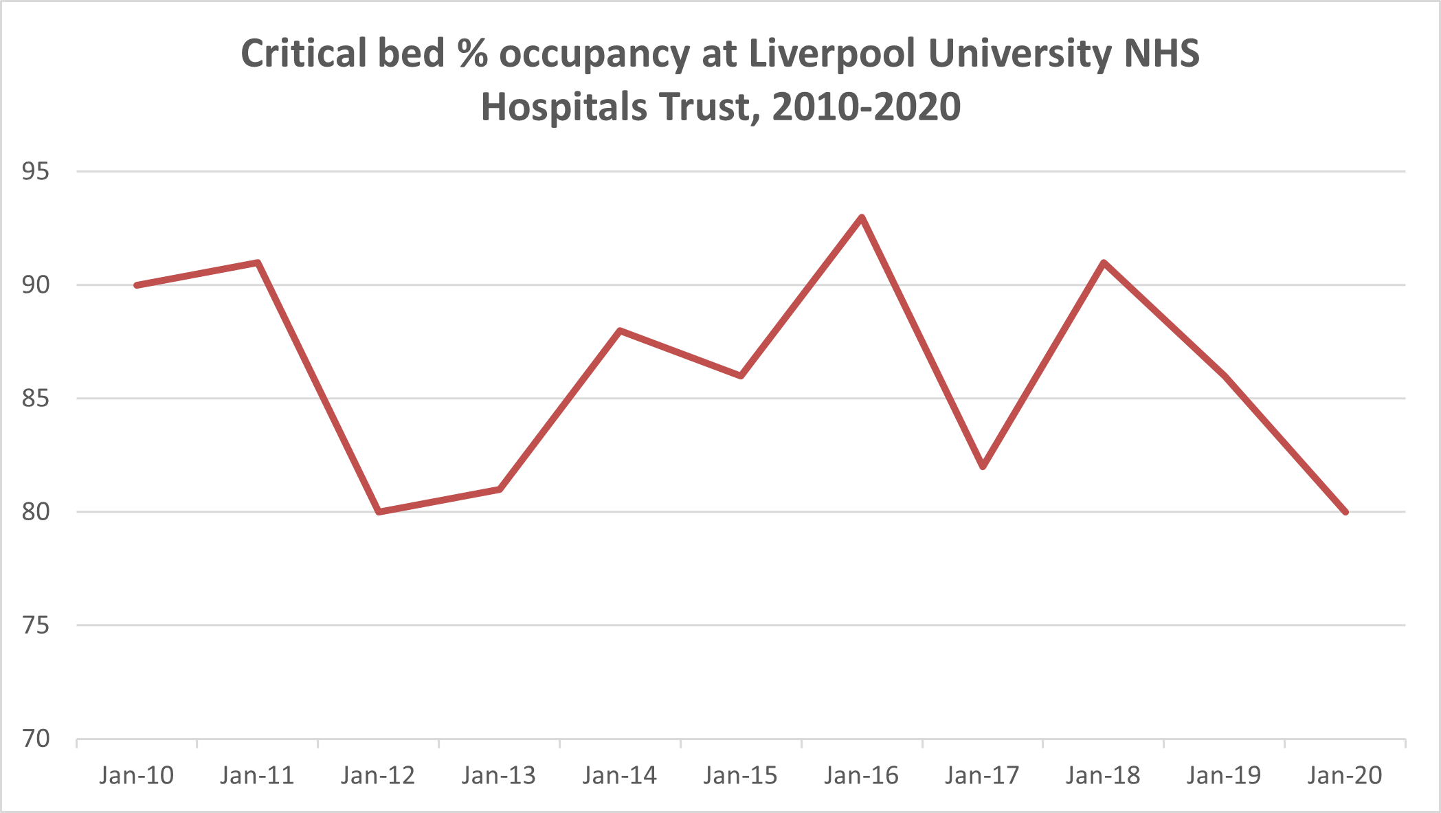 Clearly the fact that our critical care wards usually operate so close to capacity is a huge worry, because it means a surge in Covid cases could very quickly fill them up. Here’s how the intensive care occupancy at the crucial trust looks over the past ten years (and remember that capacities change a bit year to year and October isn’t over yet this year).