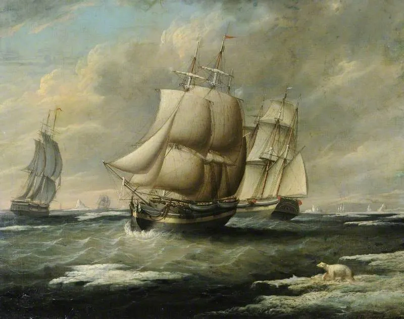 “I think he was trying to fund his own Arctic exploration,” Routledge says of the Baffin’s construction. “I’m not sure how honest he was with the other investors — if you were investing in a whaling ship, you really wanted a return on your money, which you weren't going to get from taking measurements of Greenland.” In 1834, the maritime artist Francis Hustwick painted the Baffin. Hustwick’s paintings are appropriately dramatic, capturing the grandeur of ships, pitching in bottle-green seas and set against stormy backdrops. In his painting, the Baffin forges ahead in choppy waters, flanked by two other ships. Its sails seem to billow out like the sweeping cumulus clouds in the distance. As the small fleet sails on, a polar bear, dwarfed by the ships, watches from a snow-encrusted shore. The artwork now hangs in the Ferens Art Gallery in Hull.