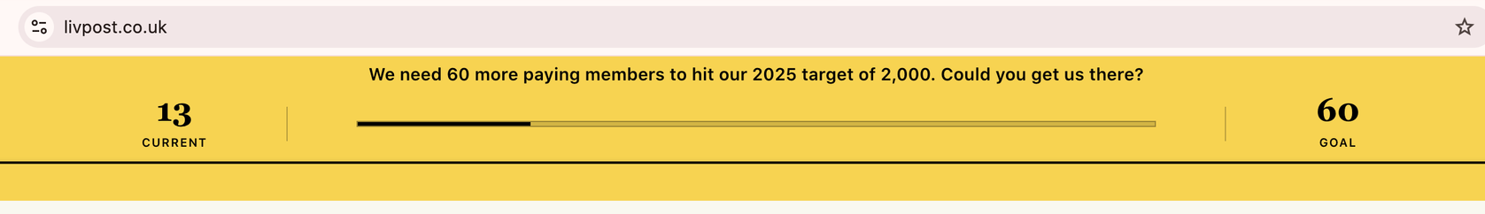 You may have noticed a change to our website. We've installed a new tracker as we attempt to hit 2,000 paid Post members by the end of the year.