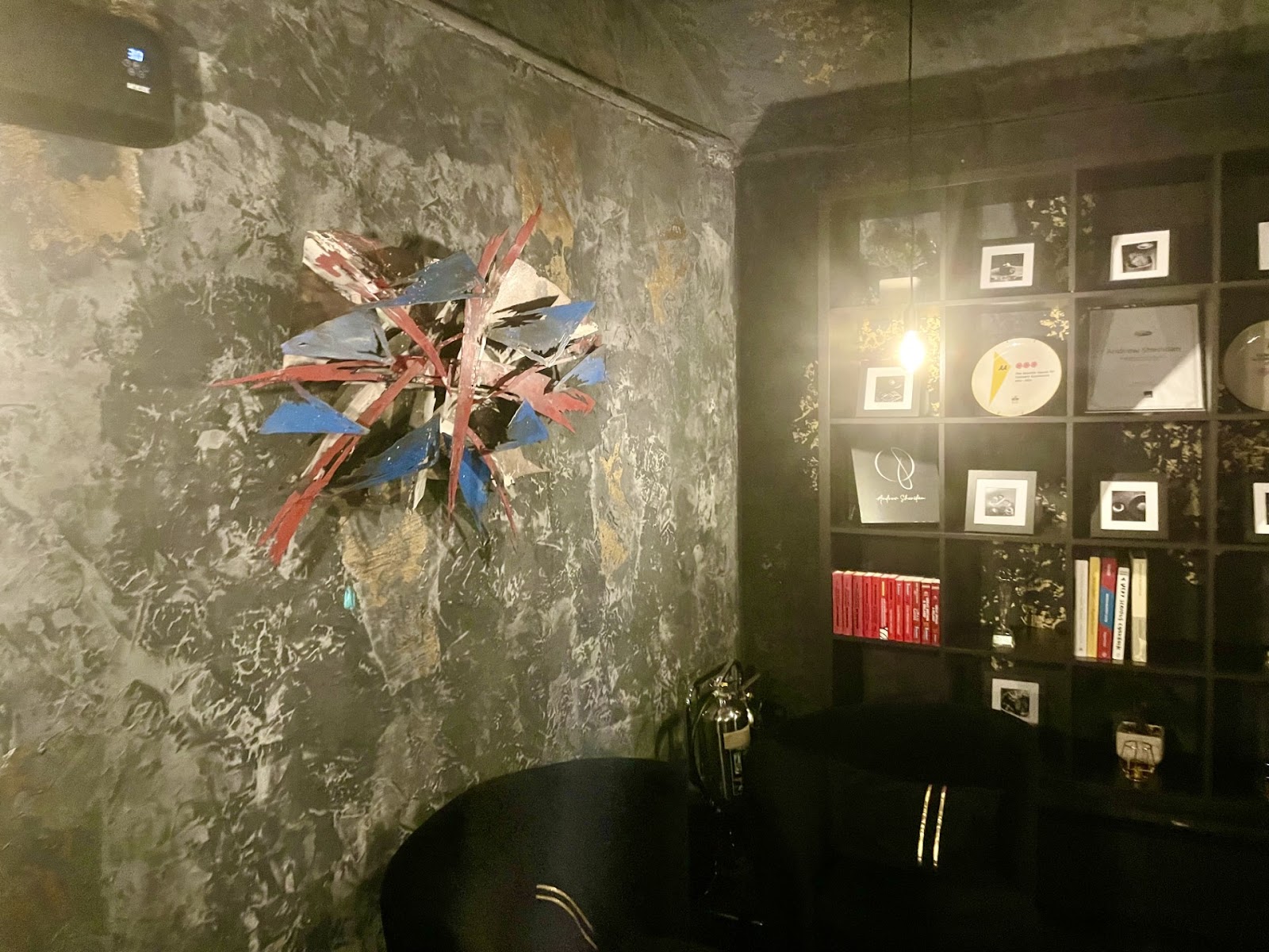 Michelin’s inspectors specifically praised Sheridan’s ‘precisely made snacks.’ There’s nothing I like more than a precisely made snack. No careless crackers or poorly-aimed cheese footballs scurrying over the post for me, thank you. So that’s why I’m here, in this black-and-gold ’80s nightclub VIP area, sitting beneath the sort of art you can only buy in a gallery in a Dubai shopping mall – all distressed shards of metal bent into spray painted Union Jacks. Behind us, shelves lined with row upon row of neatly ordered Michelin guides act like an escape room clue, foreshadowing the challenges to come.