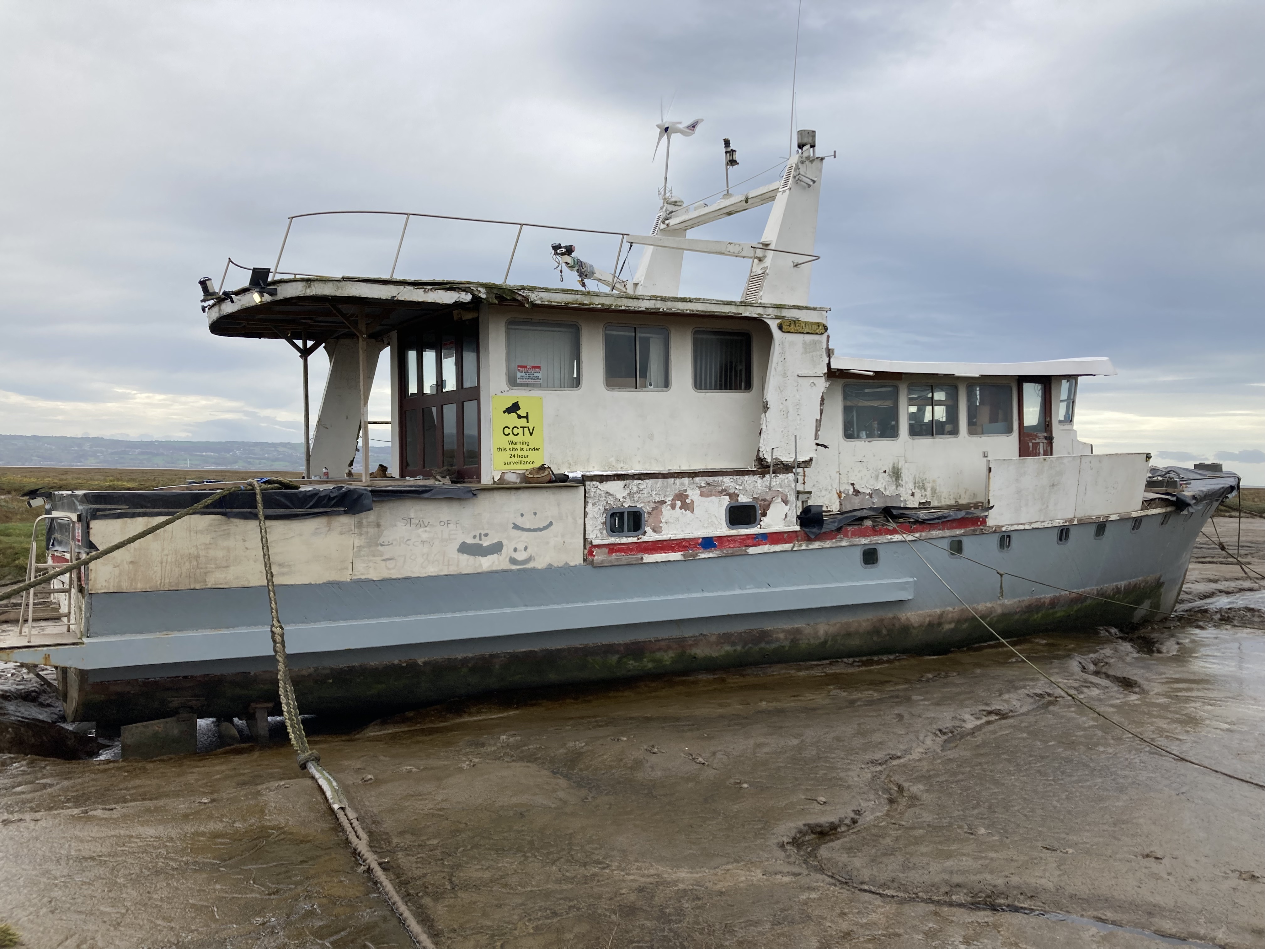 Sarinda is one of 140 bashed-up vessels in this profoundly weird and hauntingly beautiful boat graveyard near the town of Heswall. I became entranced by this place after stumbling onto a YouTube video of a drone zooming over this spot. It reminded me — not that I’ve been — of the Aral Sea in Uzbekistan, which dried up and left a flotilla of ships to rust in the Central Asian desert.