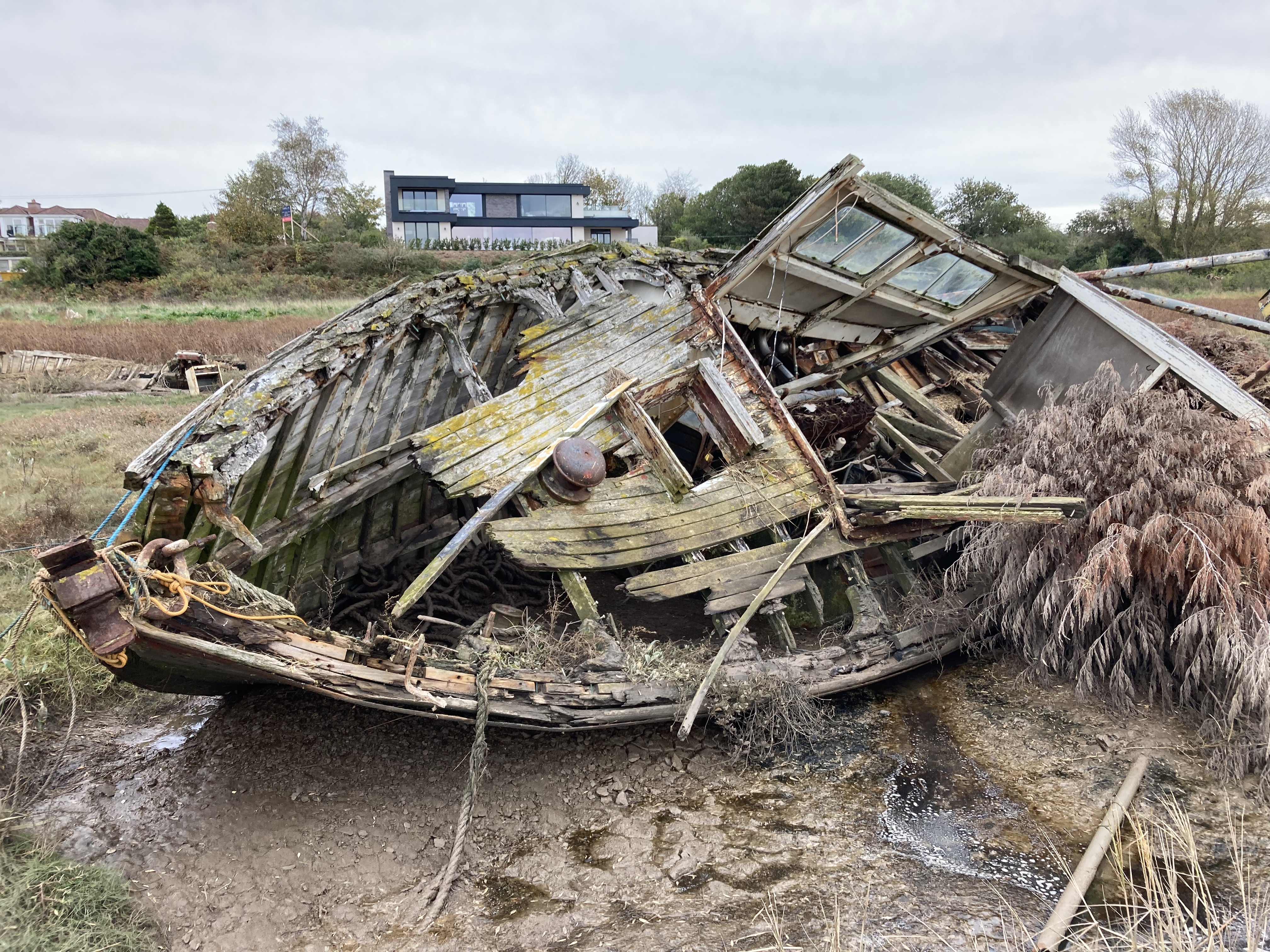 Some of the wrecks have been flipped over and dumped upside-down by storms, others lie askew because their keels have bent or snapped off. This may be a boat graveyard, but it is also where hobbies come to die. Like a cold-case detective, I peer into an abandoned craft called the Aurora and picture an adventurous family spending Saturdays at sea: this is the kettle that must have sung, the frying pan that sizzled, the blankets they huddled under. Everything inside is now broken and mildewed, and I imagine the divorces and deaths that must have stopped boats like this going out into Liverpool Bay.