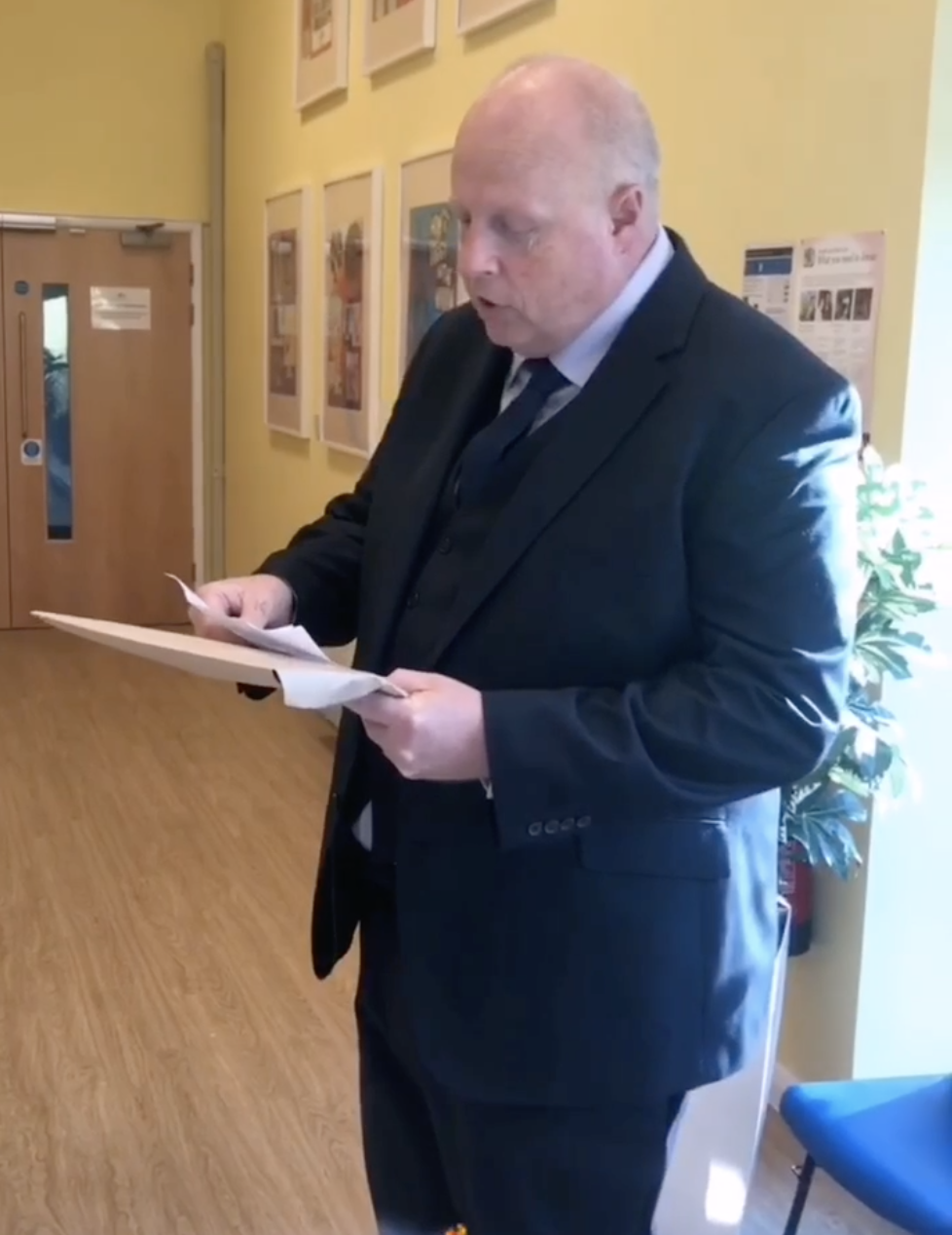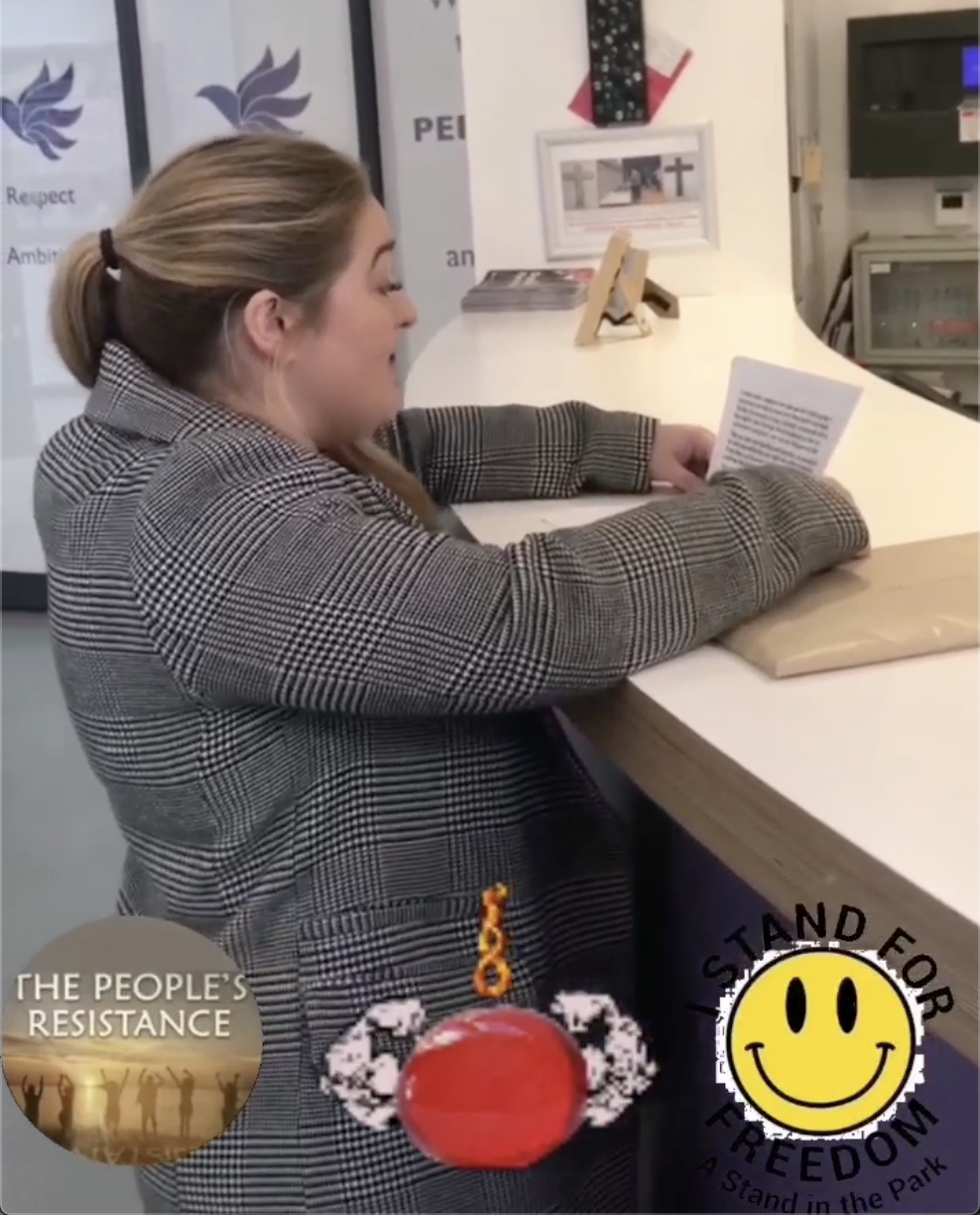 Four days later, a video began to circulate in various online groups used by anti-vaccine activists on Merseyside. It showed two men and a woman in the reception area of St Hilda’s School, demanding to speak to the headteacher Jo Code. It’s soundtracked by triumphant martial music and shows a large man in a suit and tie standing close to Code. He follows her around the room, reading aloud from a sheet of paper.
