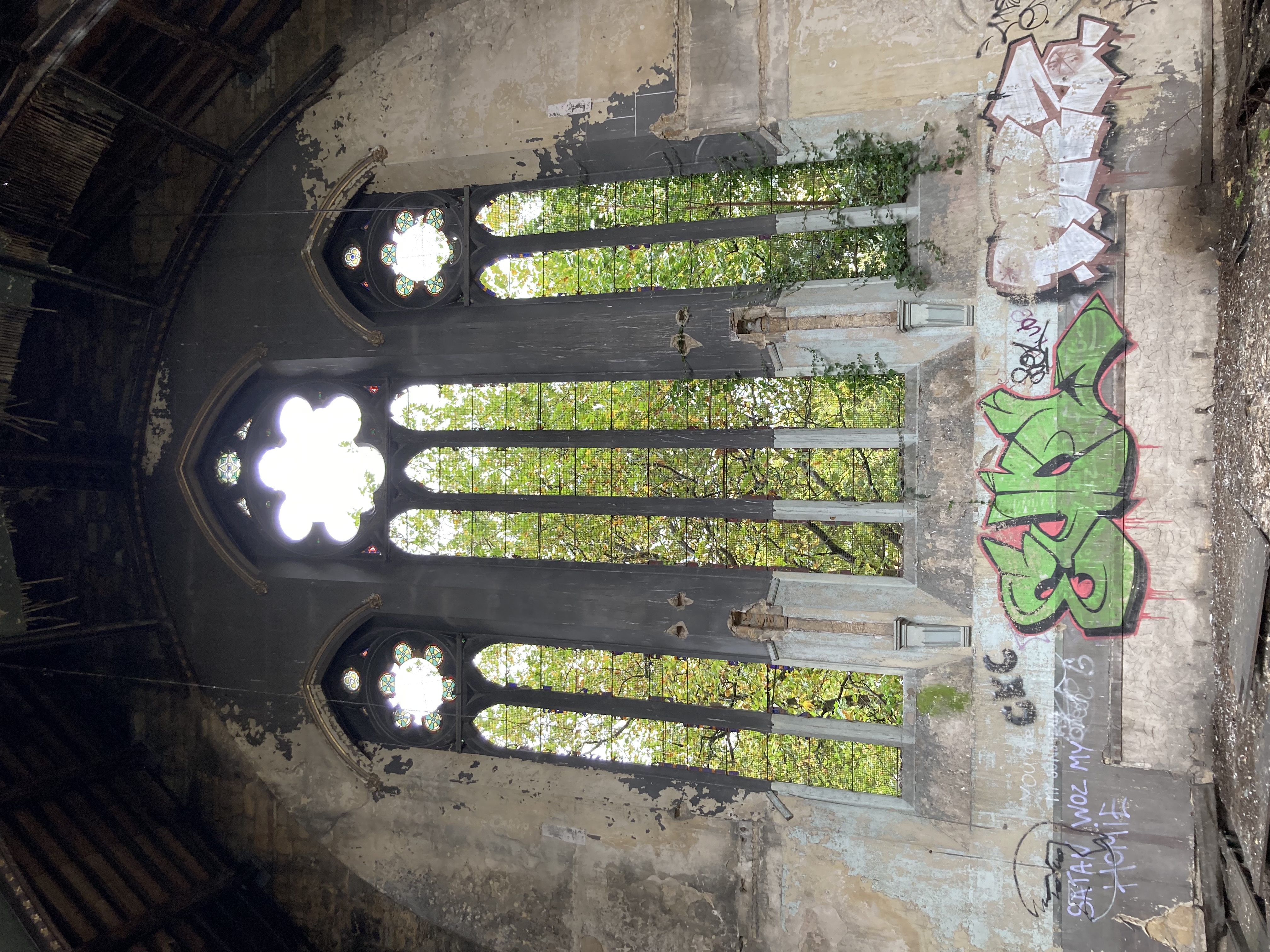 Bat surveyors aside, wildlife is the only regular visitor to the Welsh Presbyterian Church these days, following 30 years of dereliction. The building is in an advanced state of decay, with the church open to the elements, much of the roof having been taken down in an attempt to shore up the building 20 years ago. What remains overhead doesn't look long for the world.