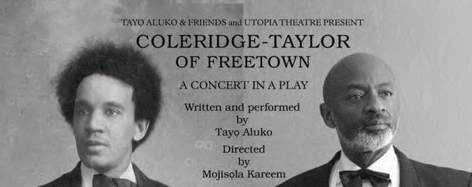 One more established playwright who’ll be showcasing his work this weekend is actor, singer, activist and former architect Tayo Aluko. The Nigerian-born, Liverpool-based polymath has written Coleridge Taylor of Freetown, a one-man show about the composer Samuel Coleridge-Taylor. Aluko will be performing it at the Capstone Theatre this Saturday but for now, I’ve got him on the phone, live and direct from a packed train to Bolton.