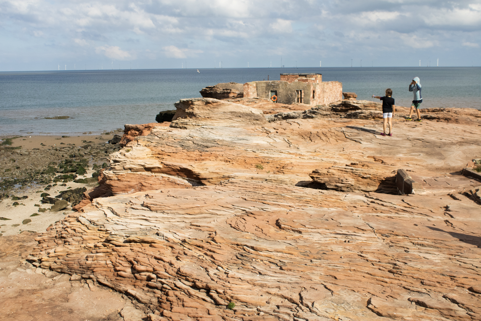 “So that’s where they found stuff from the Vikings and that sort of thing,” he says as he points at Little Eye, the smallest of the three islands. “The tide will come up this gutter here,” he says, now pointing at a deep wrinkle in the sand. Later, we stand looking at the pockmarks in some ochre sandstone: “you can imagine little people living in them, little cities.” And then, of course, there are the birds: Egrets, Warblers, Waders, Meadow Pipits, Oystercatchers, Wheatears, you get the idea.