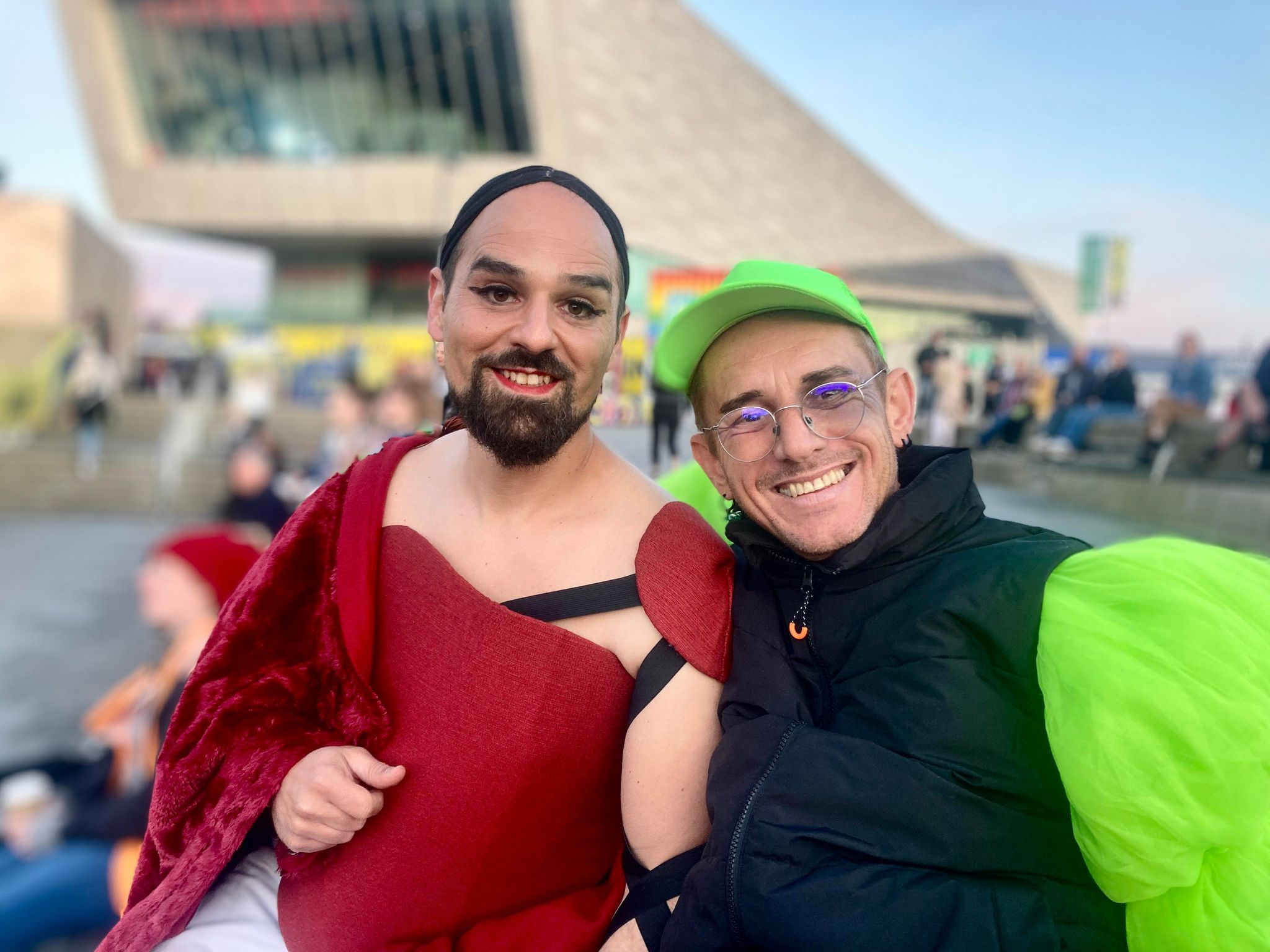 I head back, but the party energy has spilled up over the banks of the Mersey and it’s flooding the city centre streets. I keep hearing that Liverpool has embraced Eurovision heart-first, that it’s a city amped up, thriving under the bright lights. And if that’s true then for no-one is it truer for than the 40-strong pack of glitzy Union Jack-wearing women who come cascading down Bold Street past me. They move like every hen do of their lives was merely training for this cherished moment.