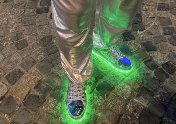 Many Belarussians have fled in the past few years — including people Andrei knows — while others have been imprisoned back home. One of the political prisoners currently arrested is a Liverpool fan, Andrei explains. He sits in his cell singing You’ll Never Walk Alone. His name — I later find out — is Andrei Aliaksandrau and he was sentenced to 14 years in a penal colony on spurious charges of high treason, amongst other things. “Many people at home are scared to say a word that goes against [the] government,” he continues as a man in a Union Jack zoot suit with a bowler hat momentarily steals his gaze.